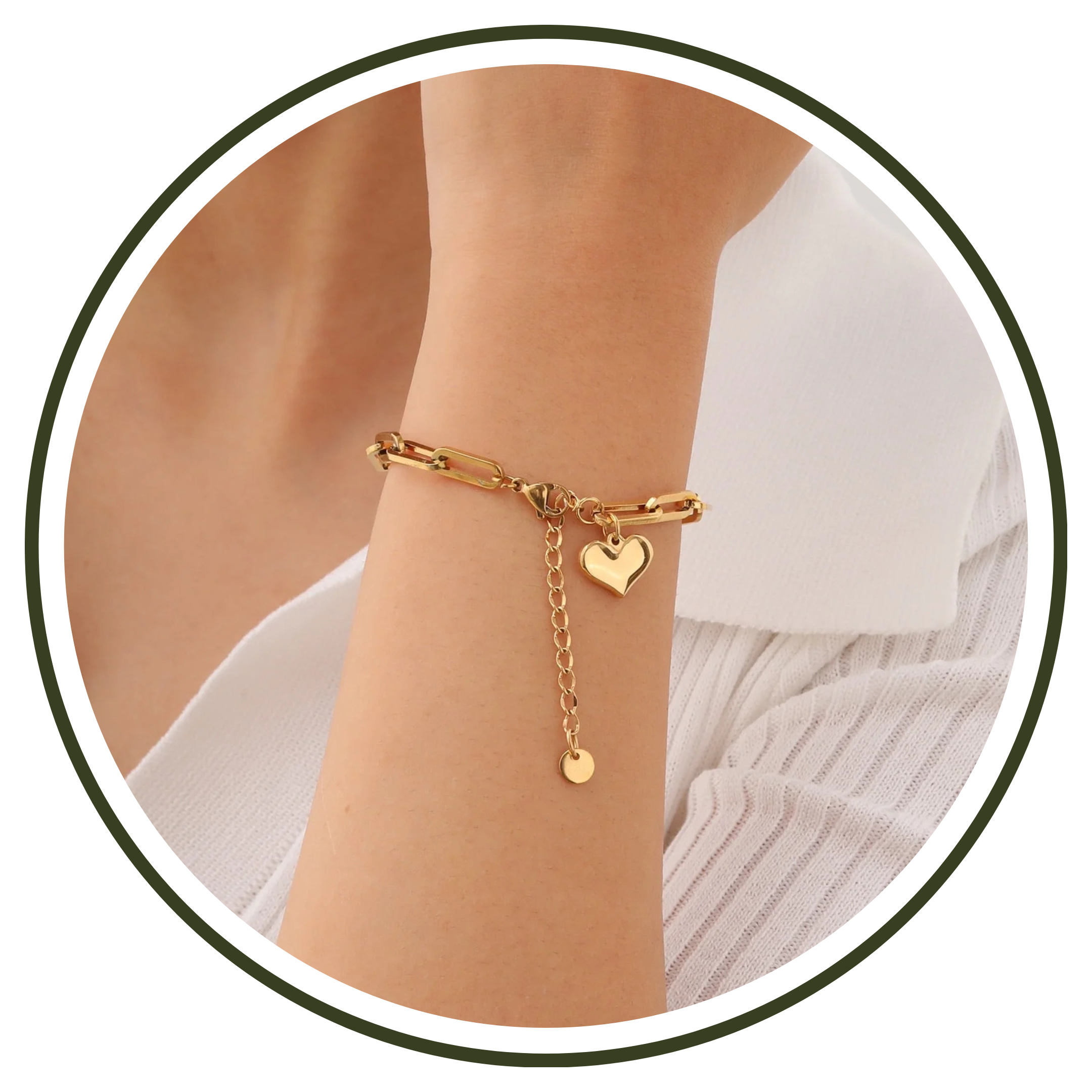 18k Gold-Plated Anti Tarnish Heart Themed Charm Bracelet