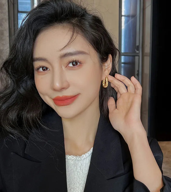 18K Gold plated Twist Classic Style Waterproof Ear Studs